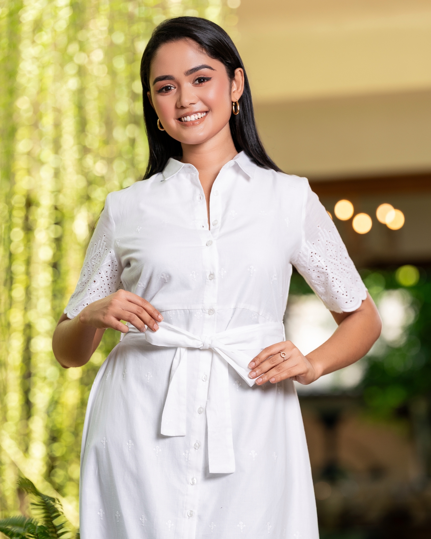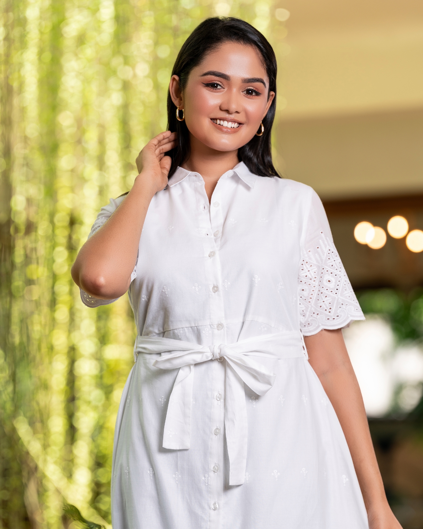 Belt Detail Scallop Hem Maxi Shirt Dress