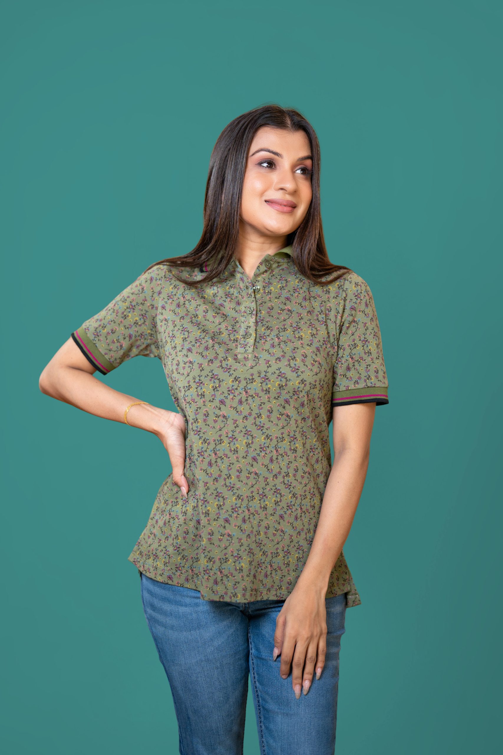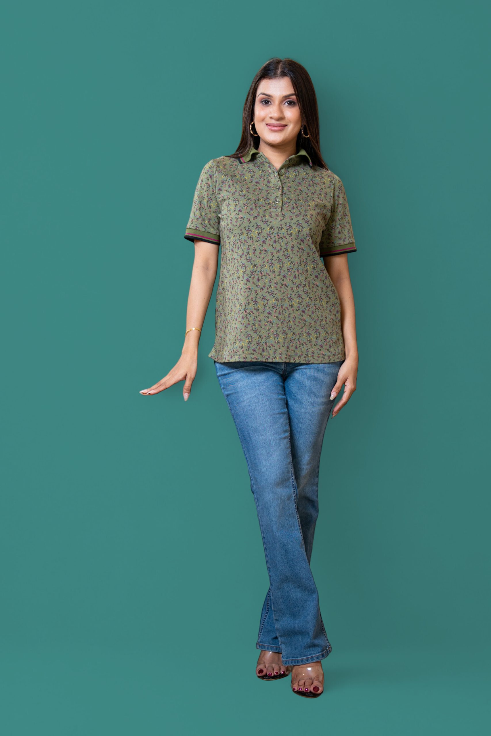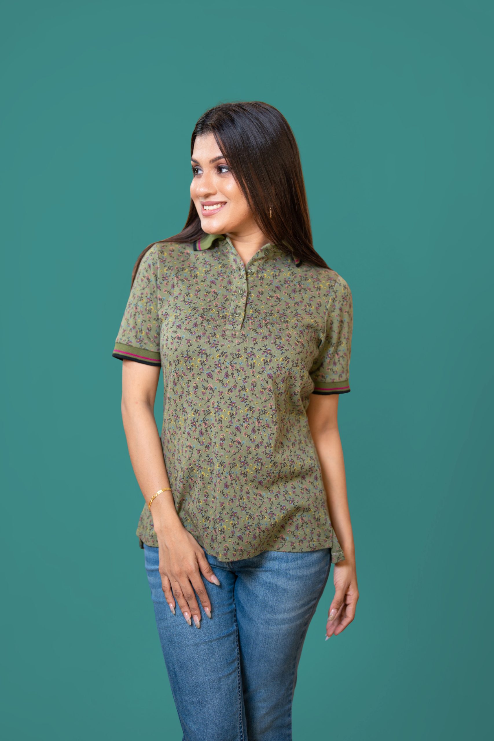- Features a Classic Polo Collar and Floral Print