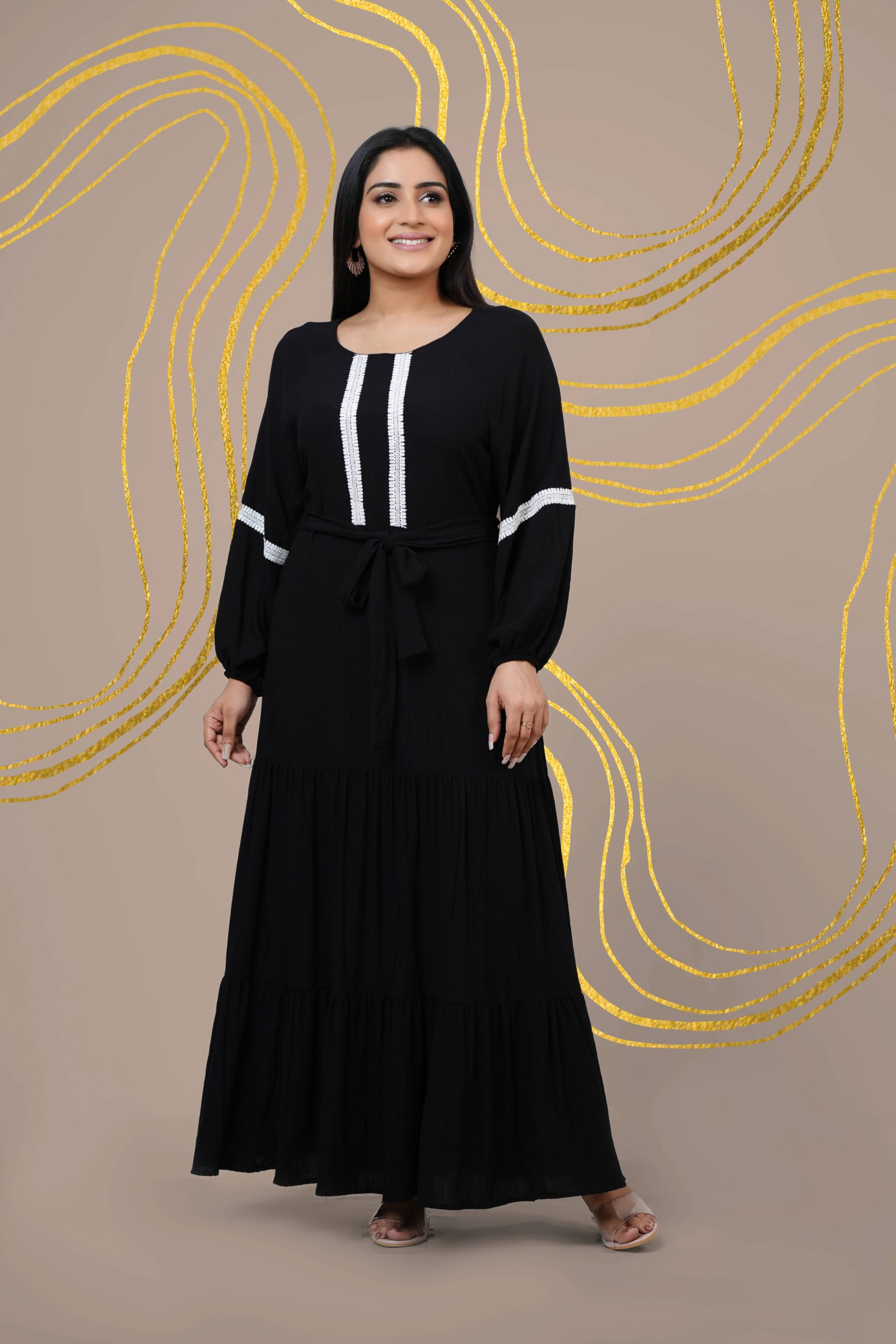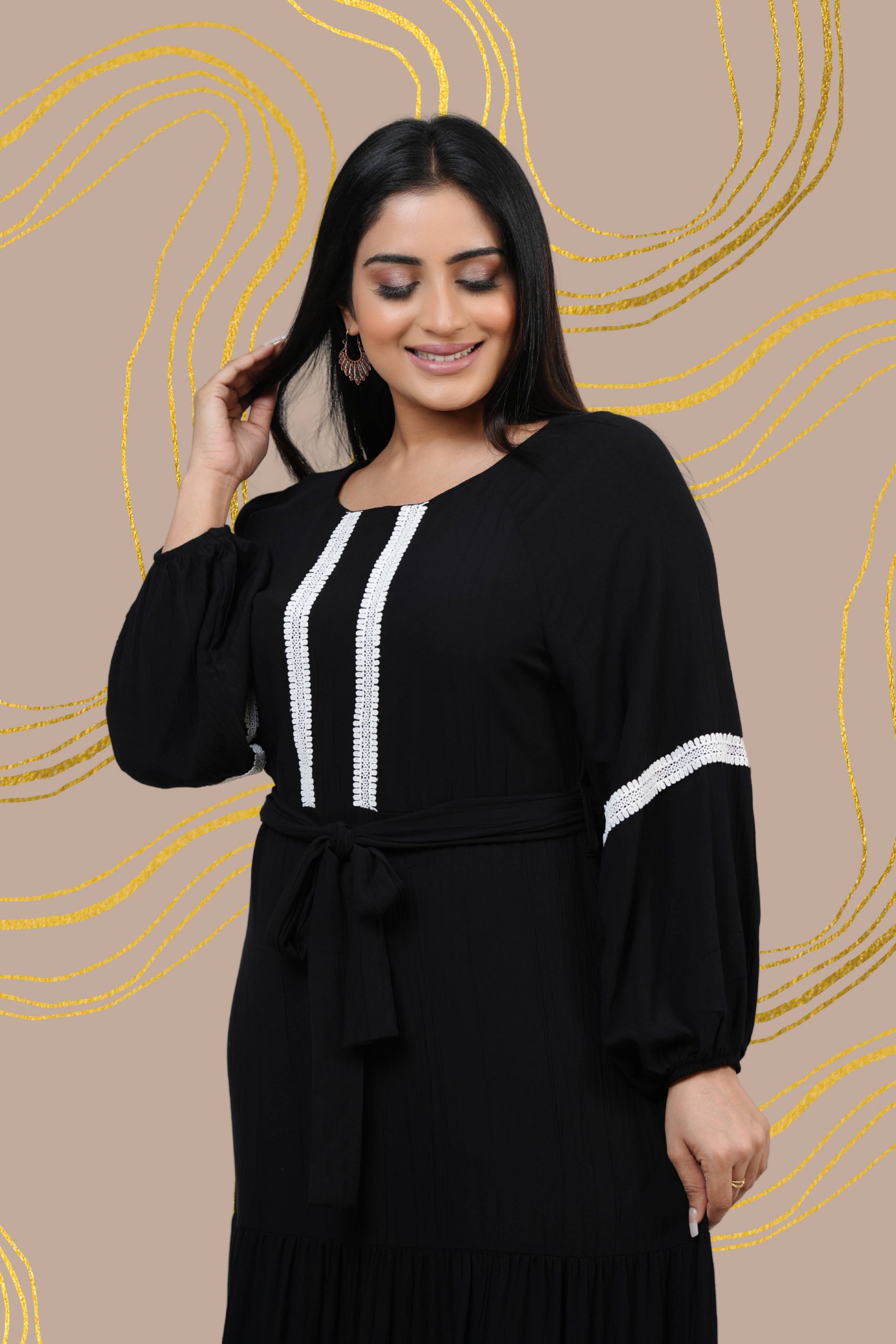 Lace Detailed Baggy Sleeve Maxi Dress