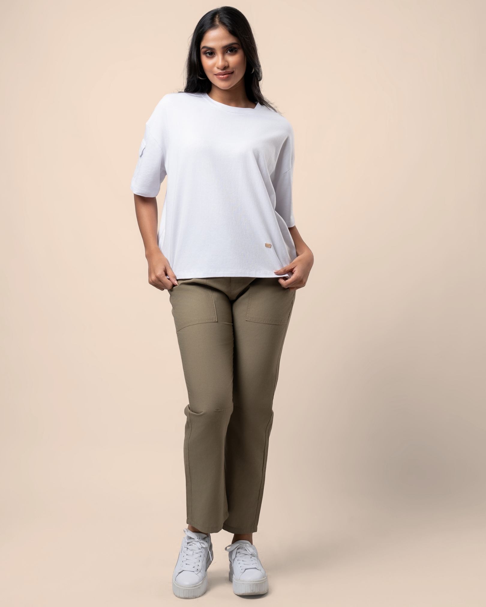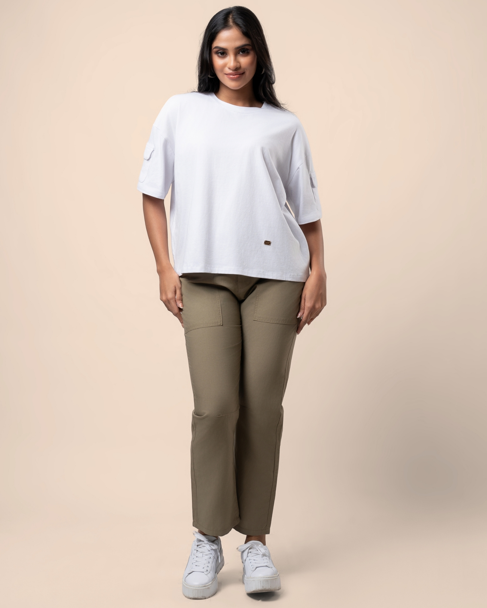 Sleeve Patch Pocket Detail Oversized T-Shirt