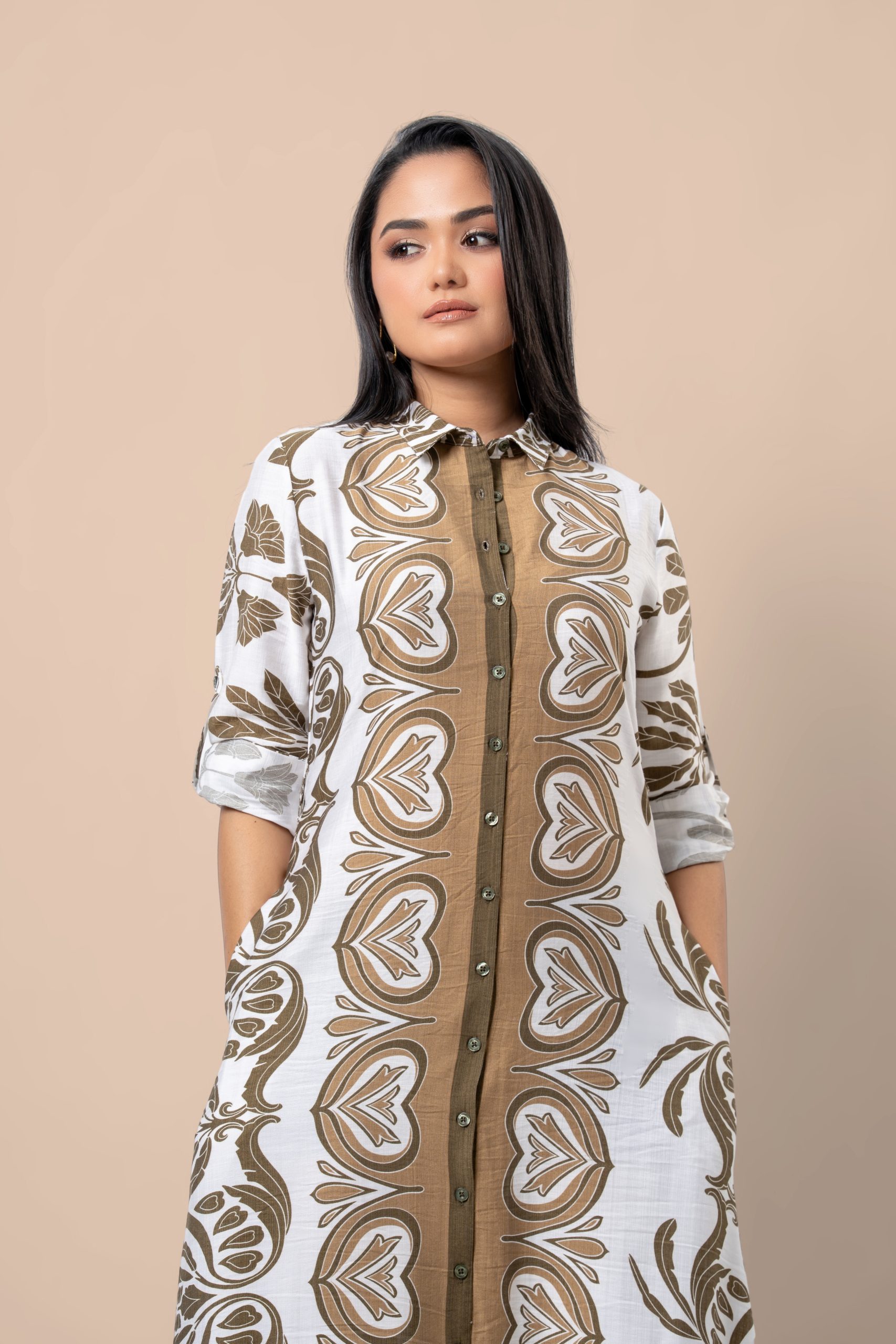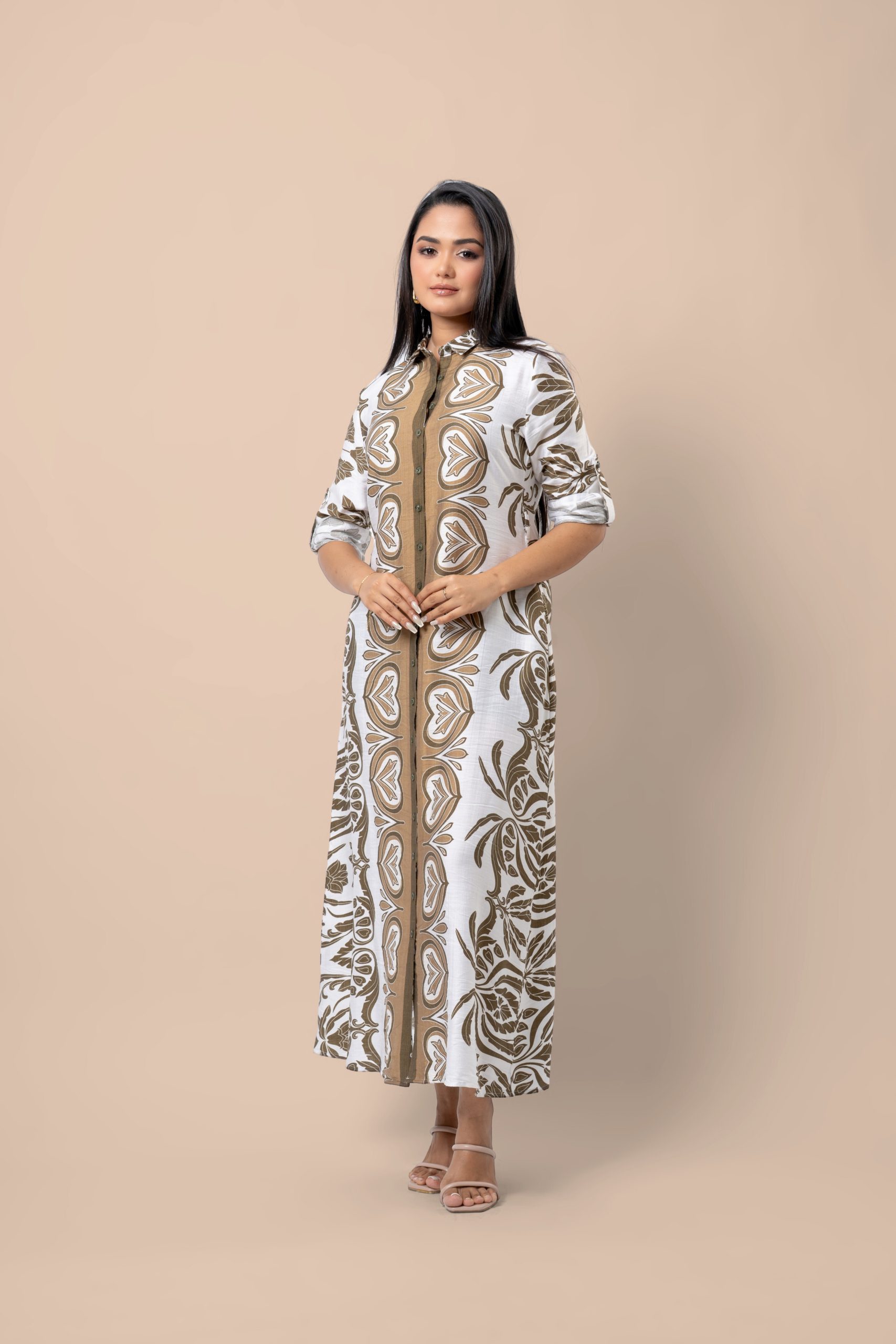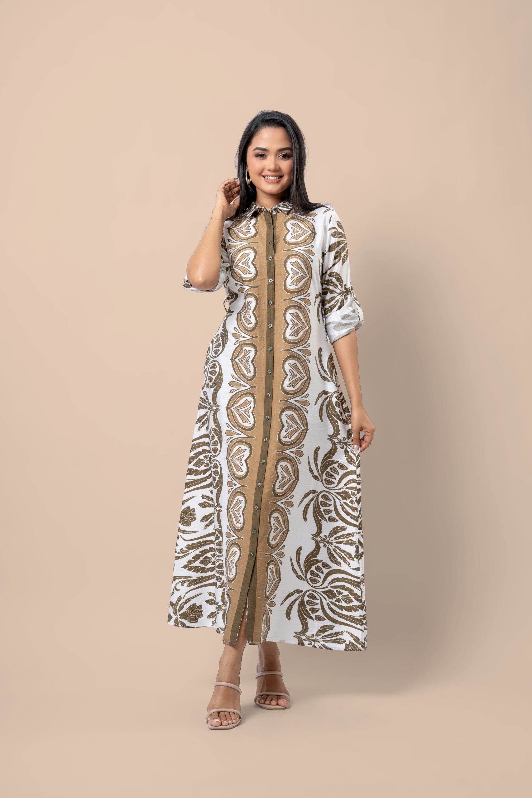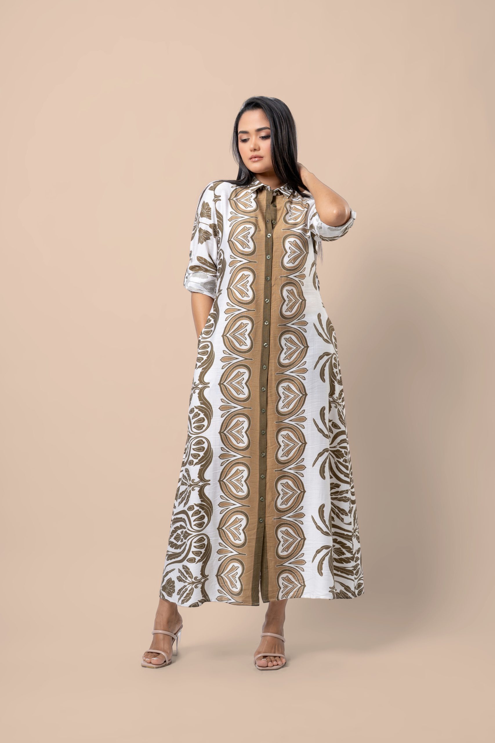 Abstract Botanical Patterned Button-Down Maxi Dress