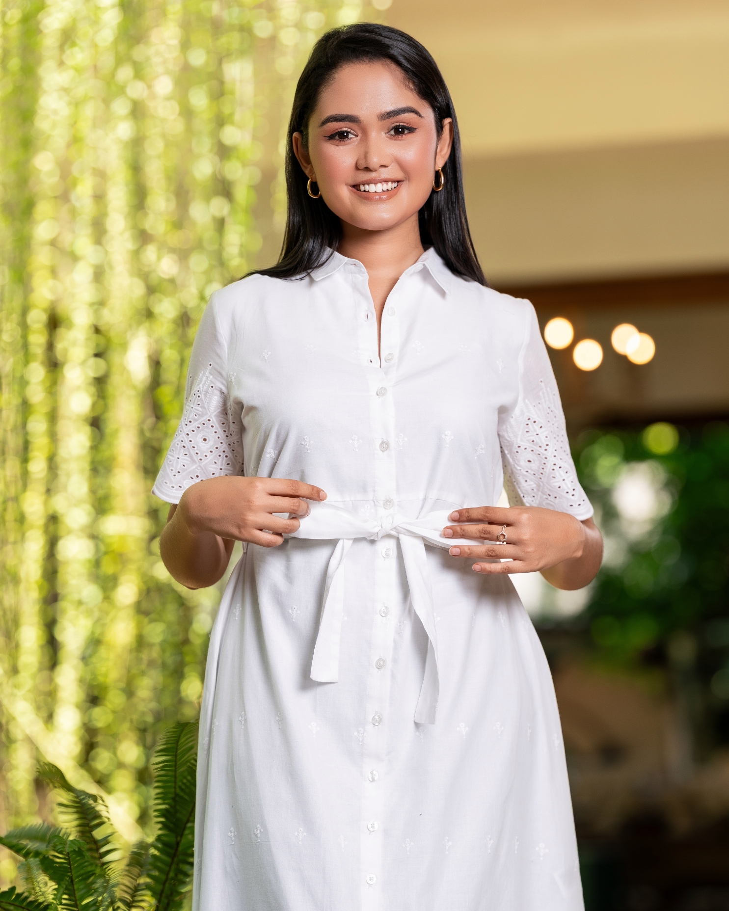 Belt Detail Scallop Hem Maxi Shirt Dress