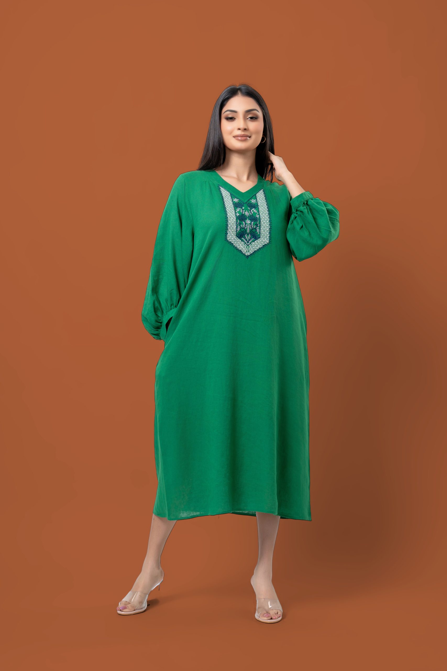 - Features Puff Sleeves and Delicate Embroidery Accents