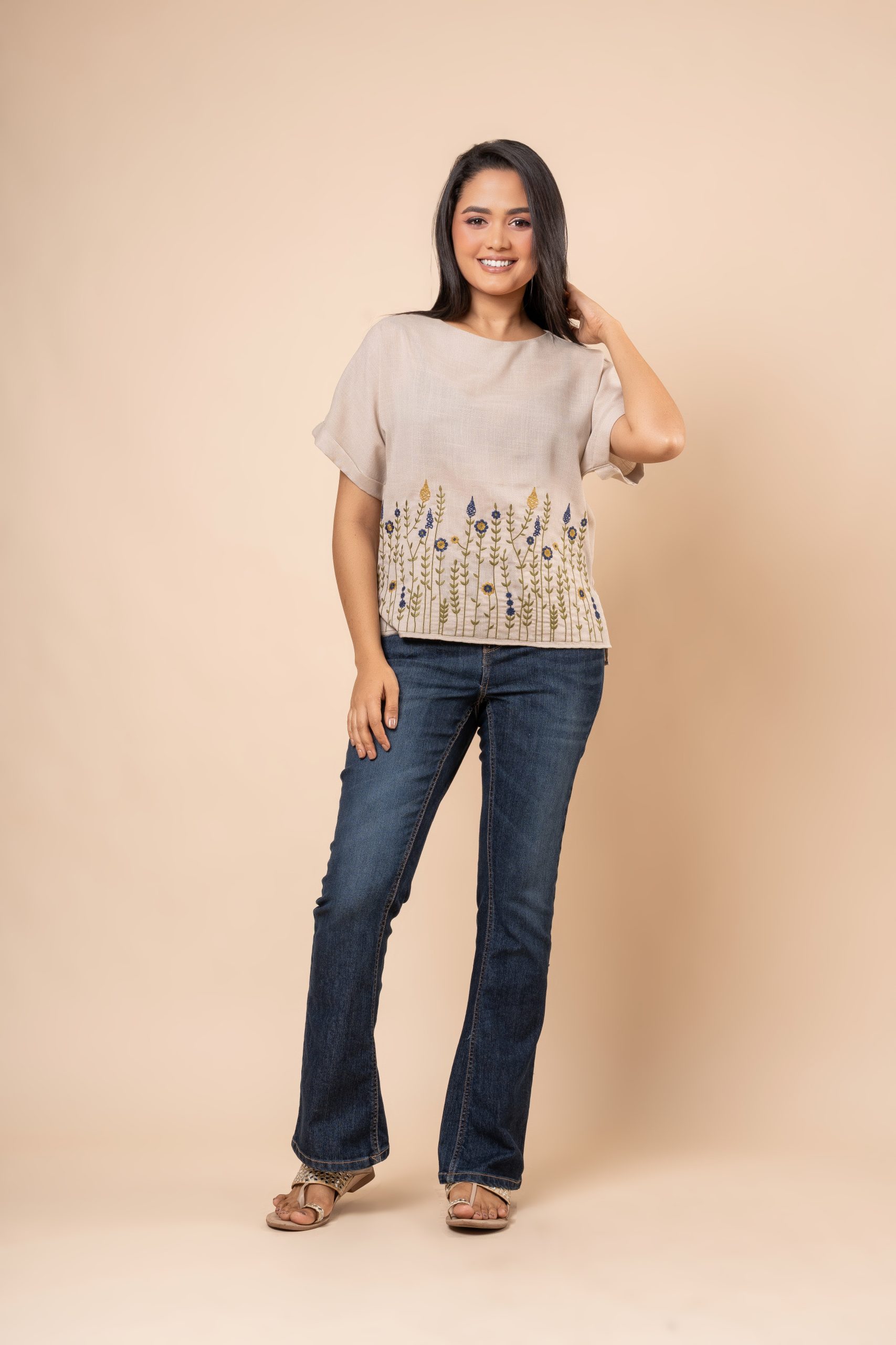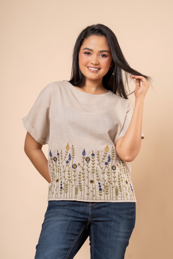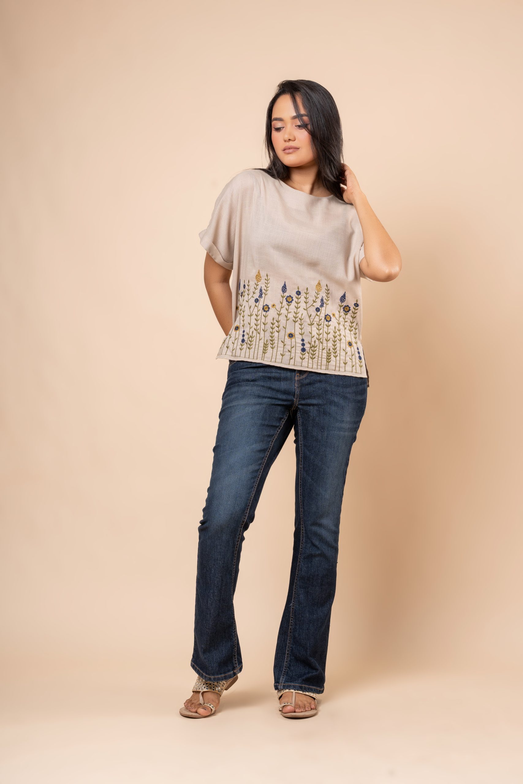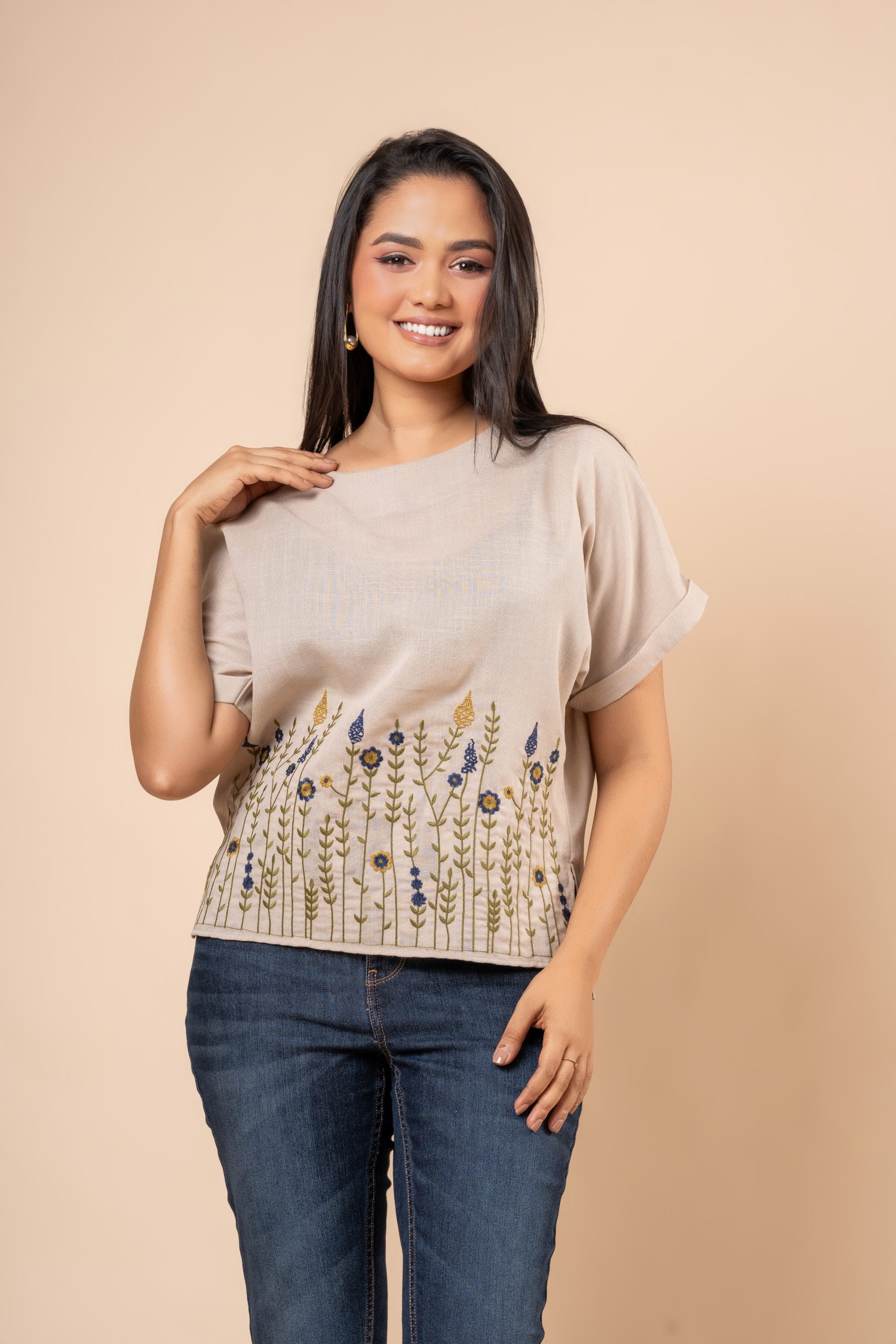 Floral Embroidery Detail Maggie Sleeve Blouse