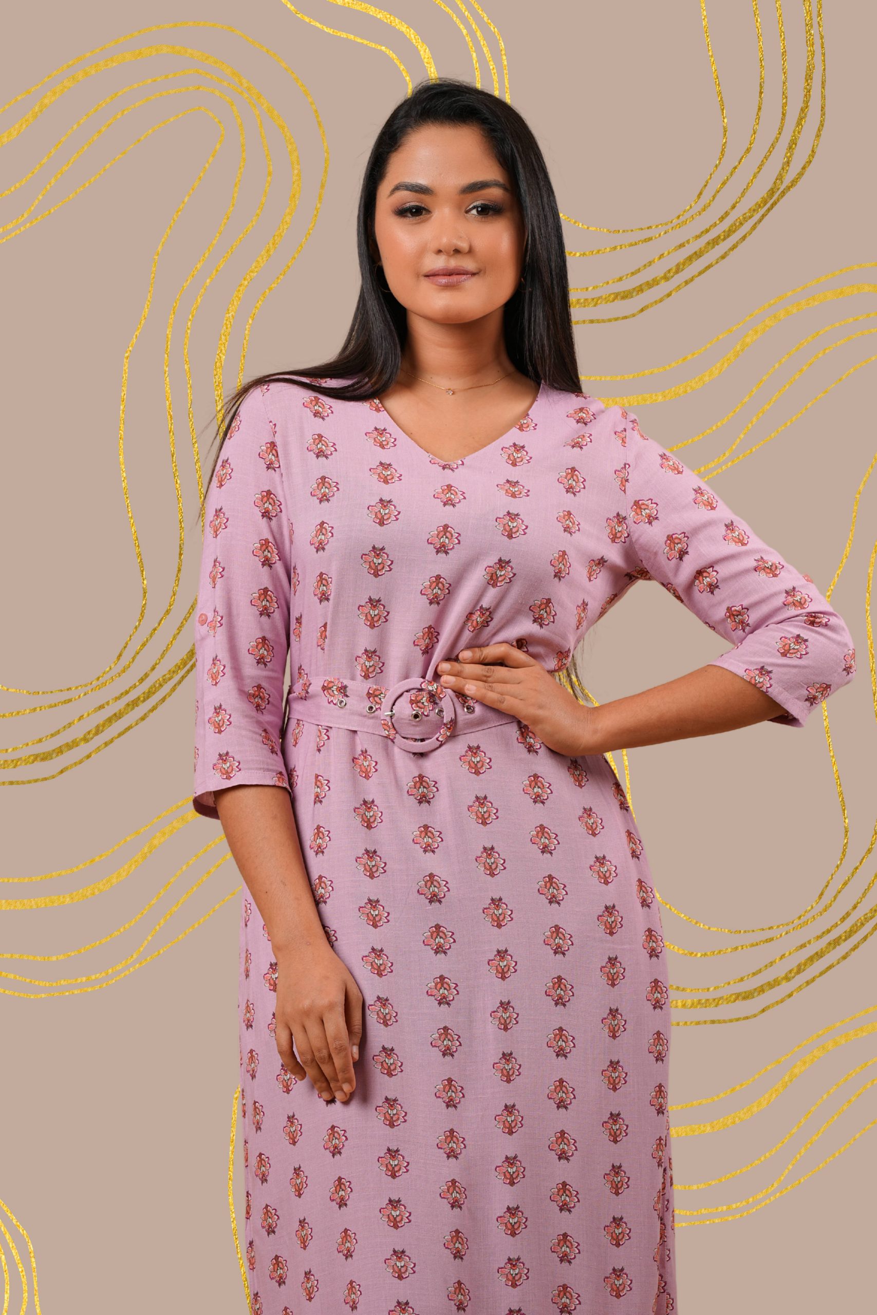 Floral Patterned Frilled Detail Belted Maxi Dress