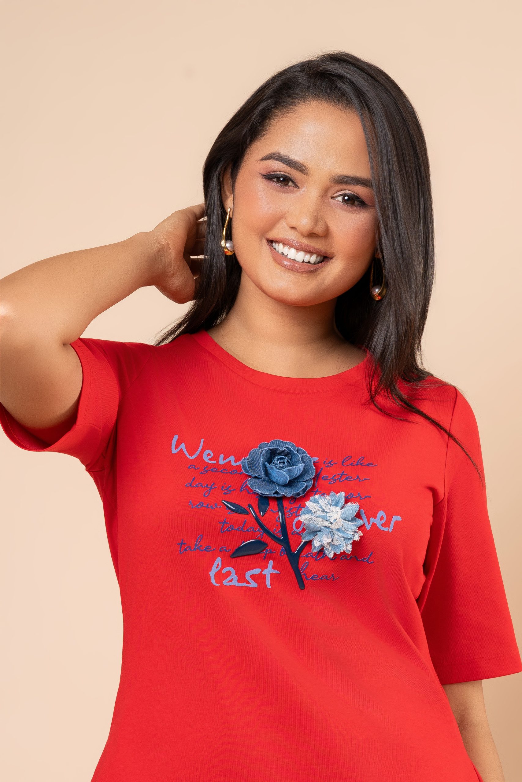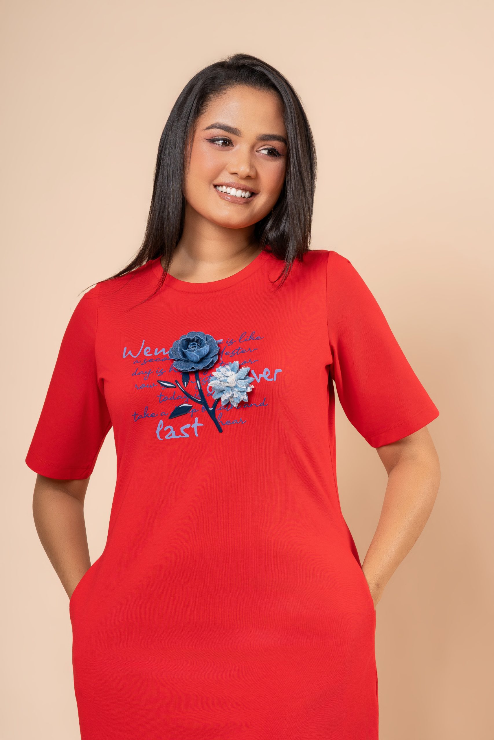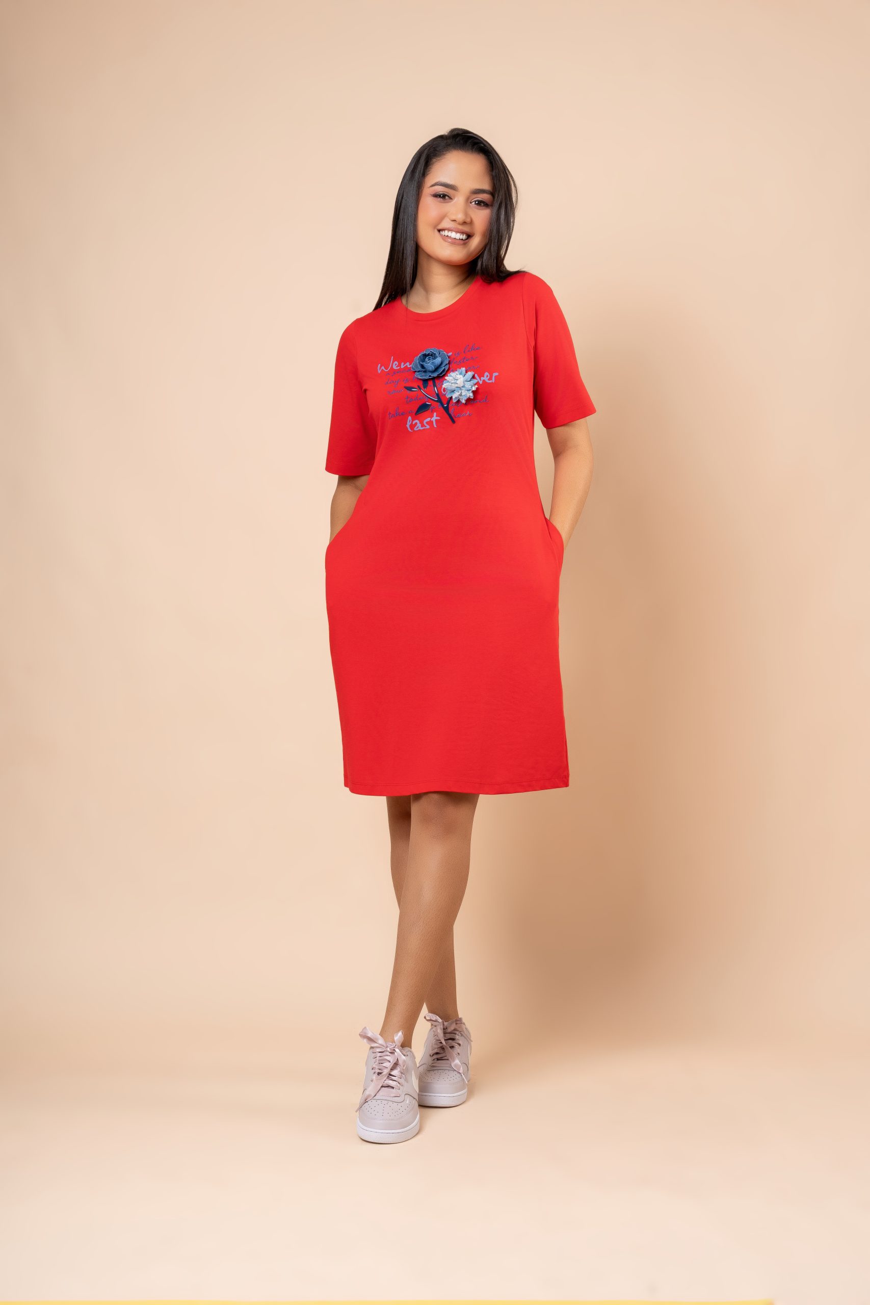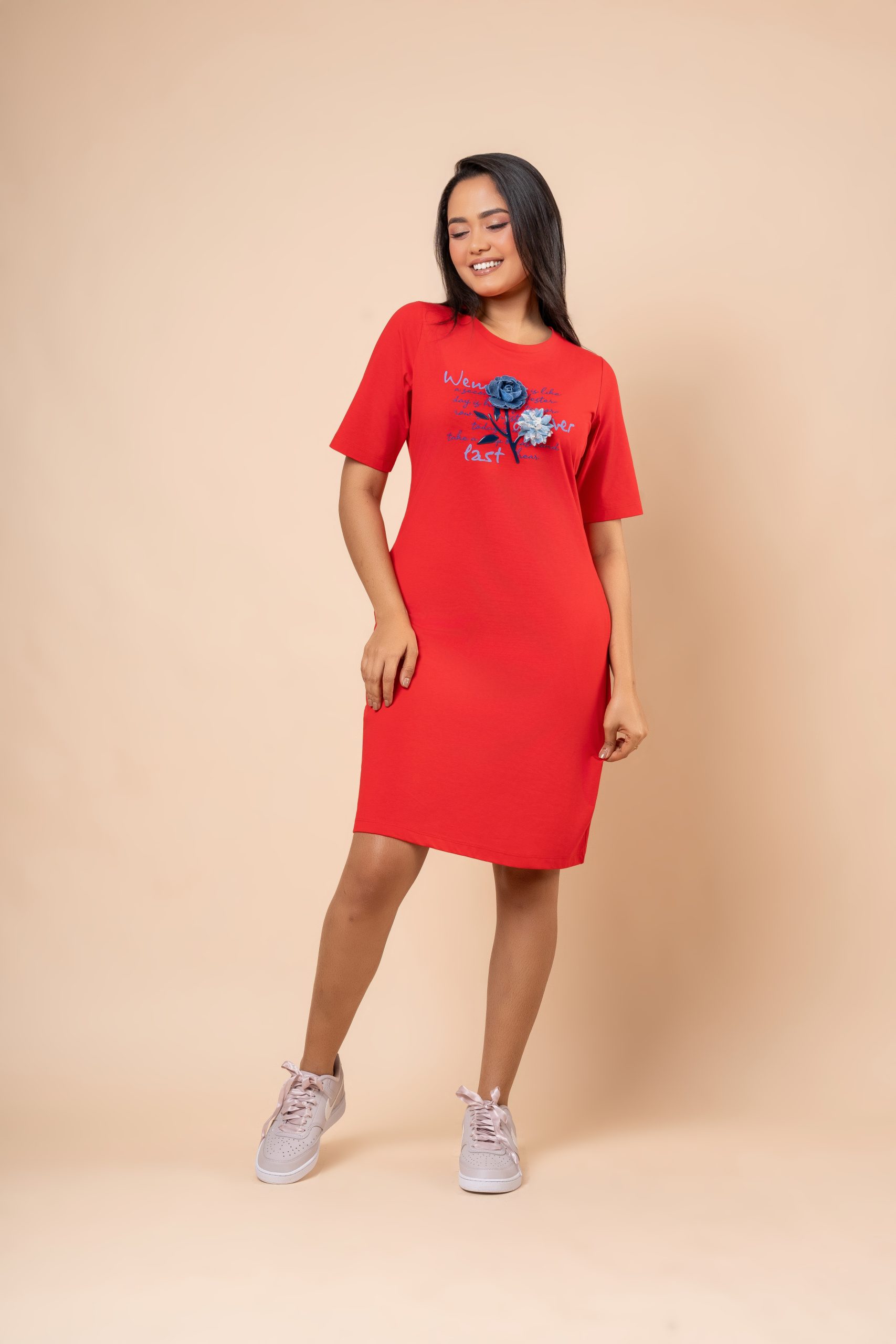 Flower Embellishment Detail Short T-Shirt Dress