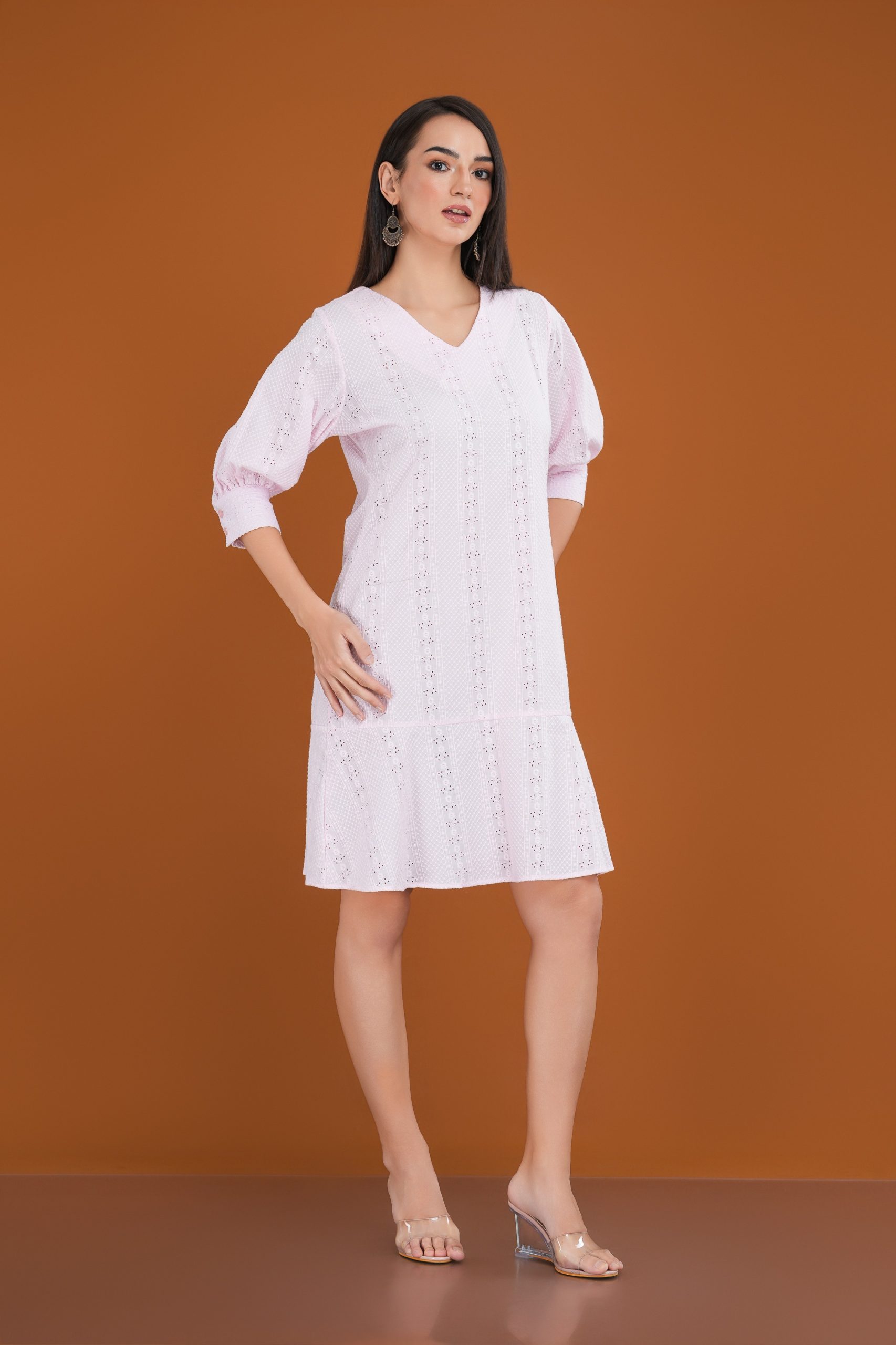Loose Fitted Cut Lawn V-Neck Short Dress