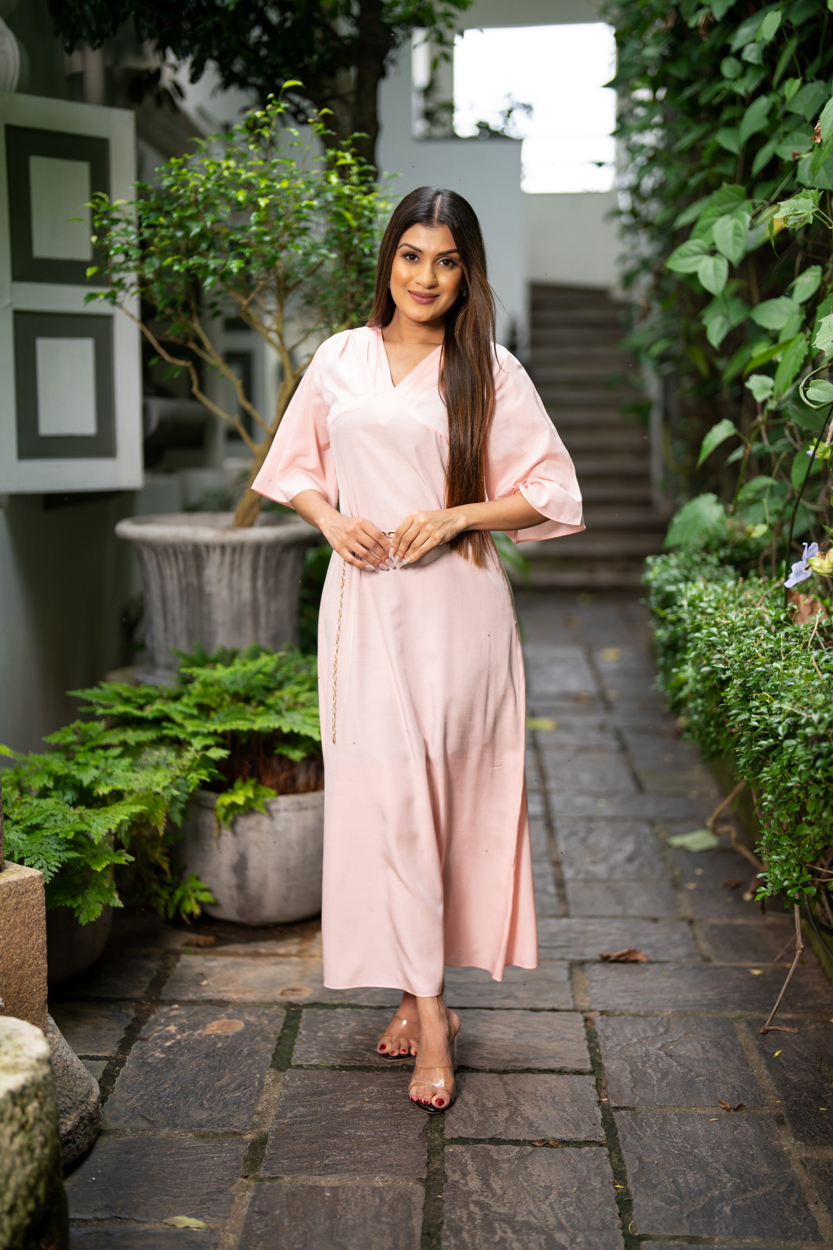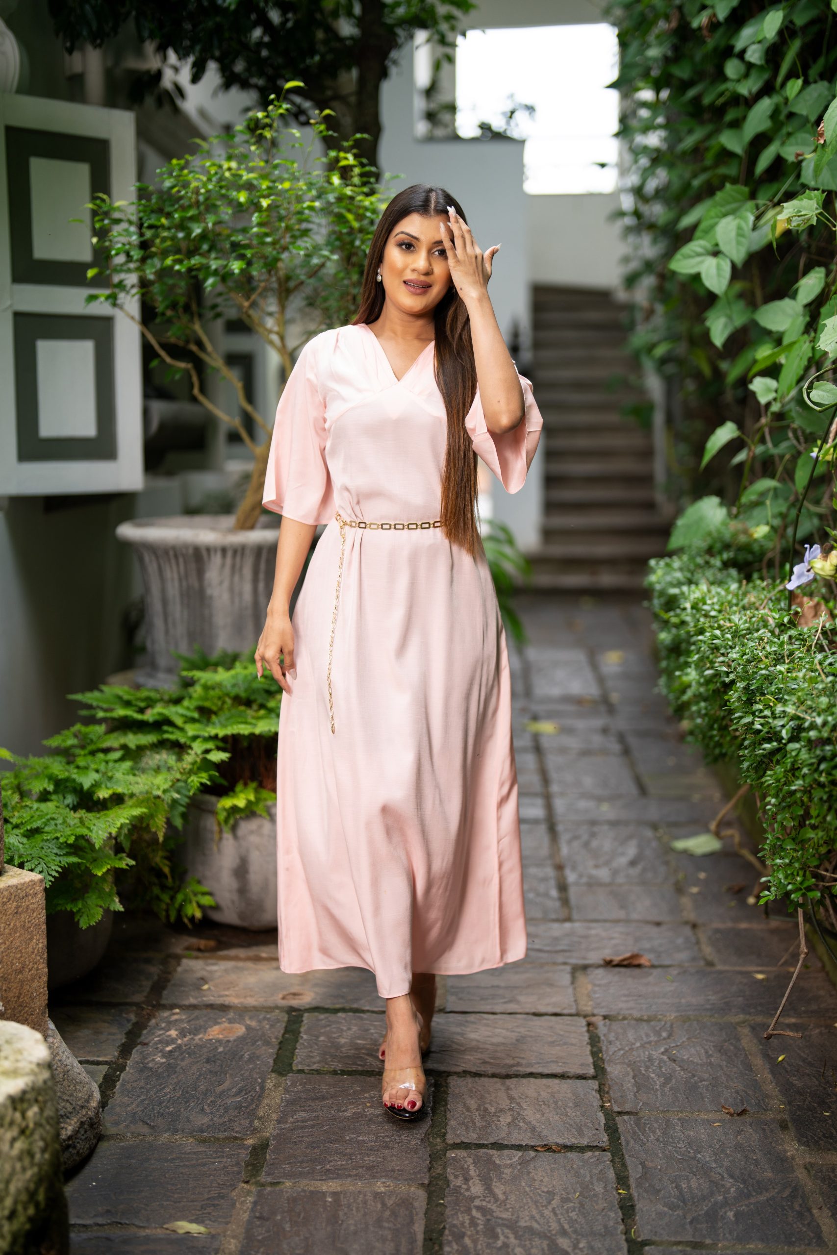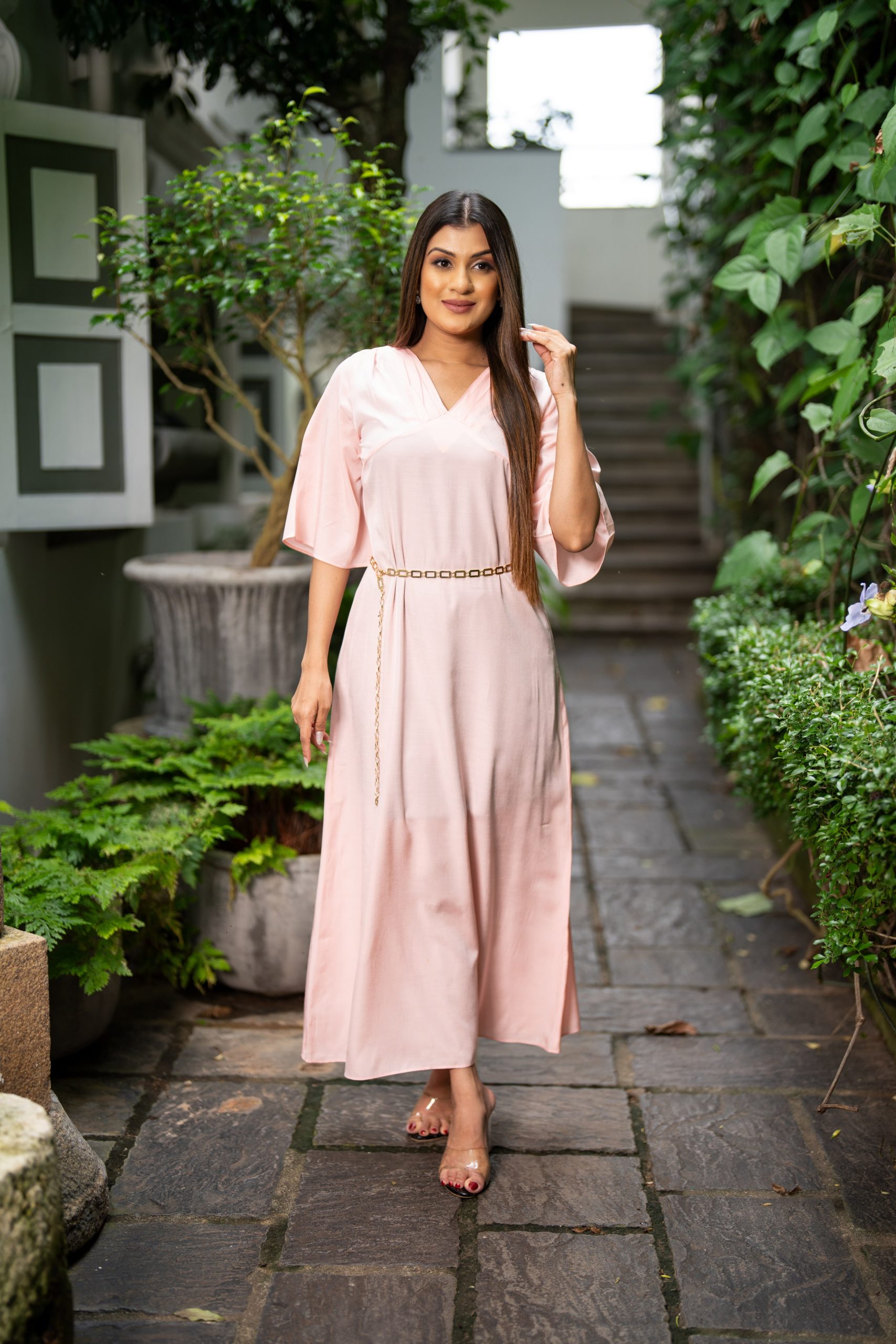 Pleated Empire-Line Detailed Belted Maxi Dress