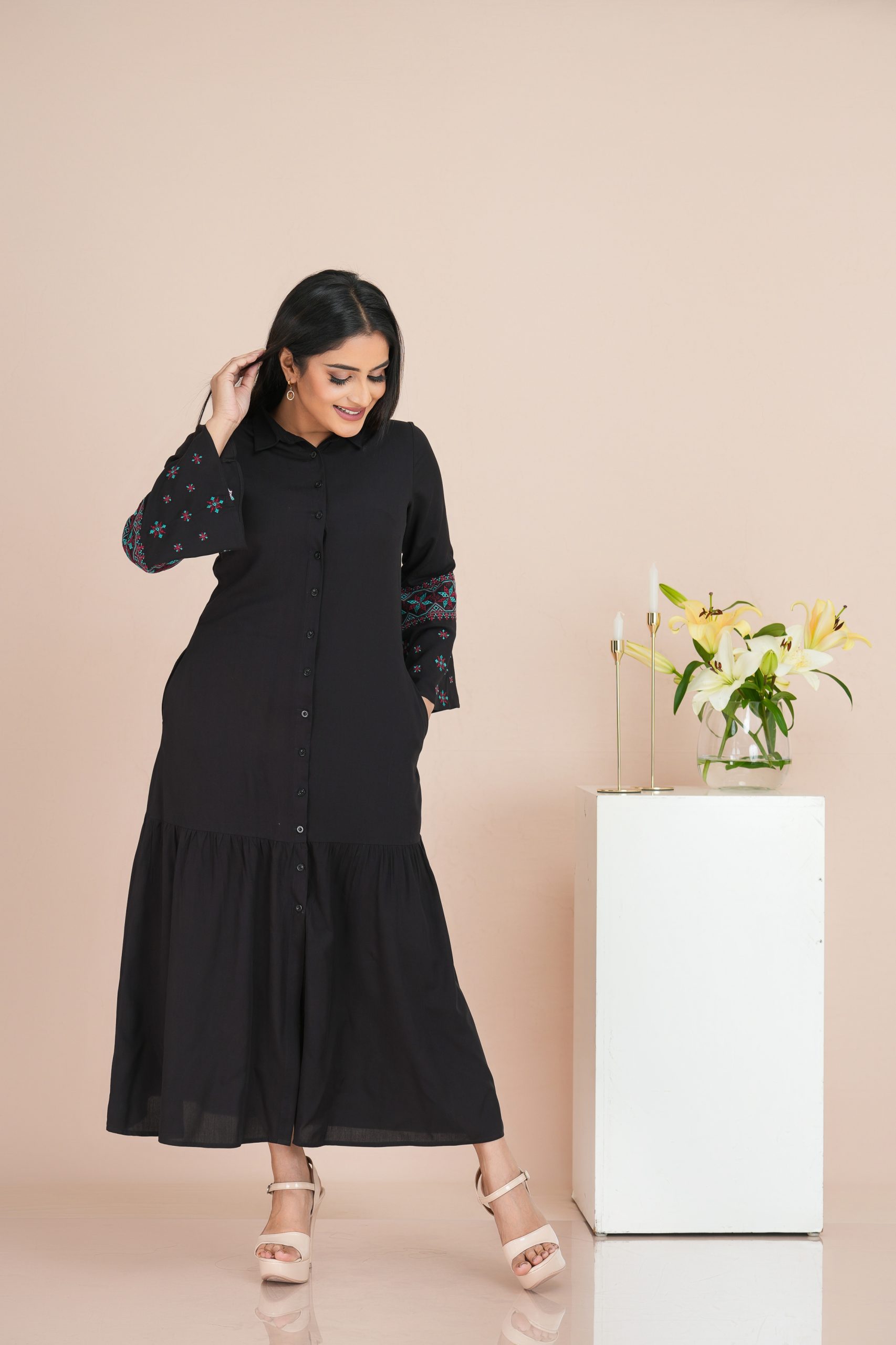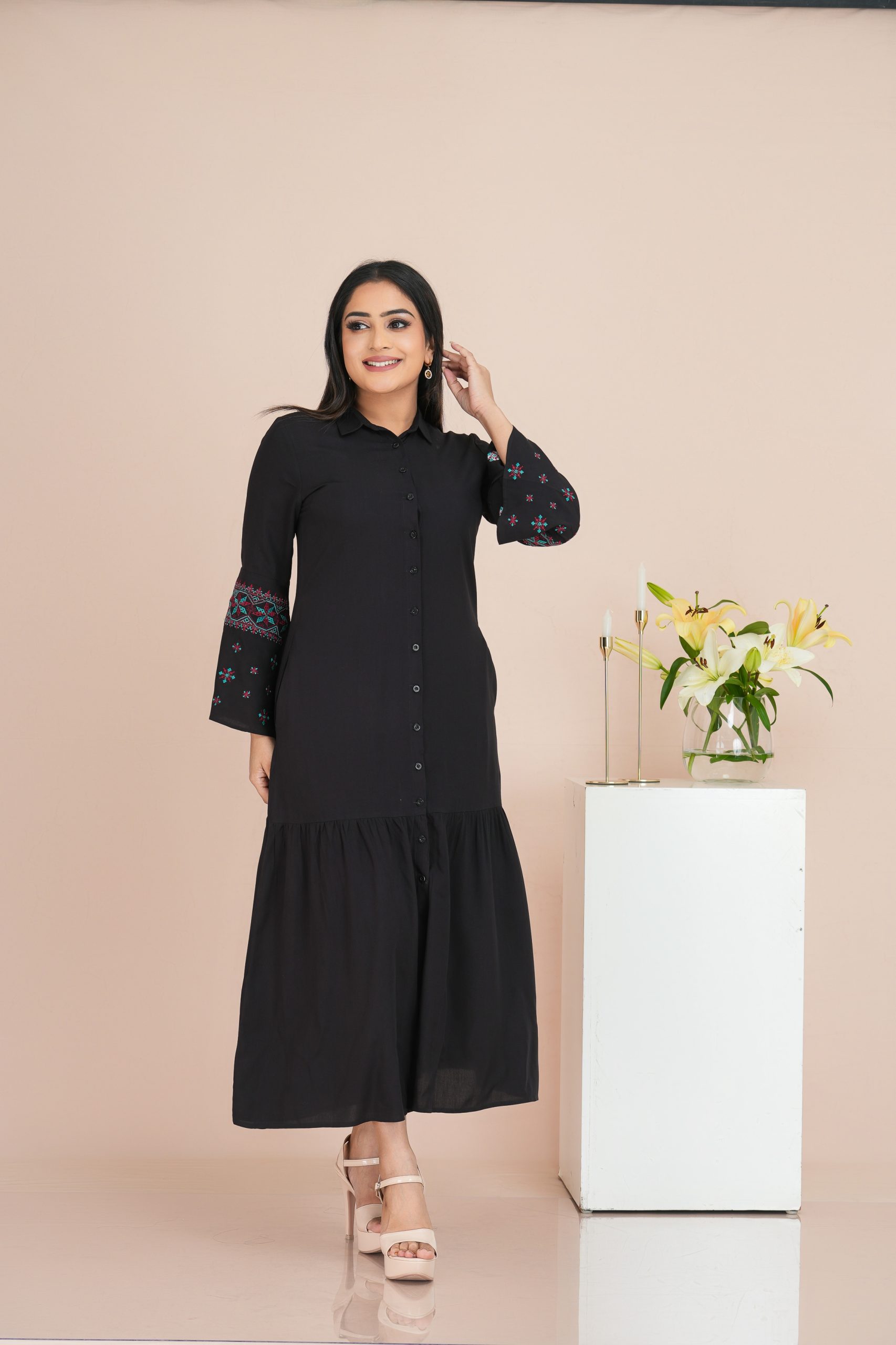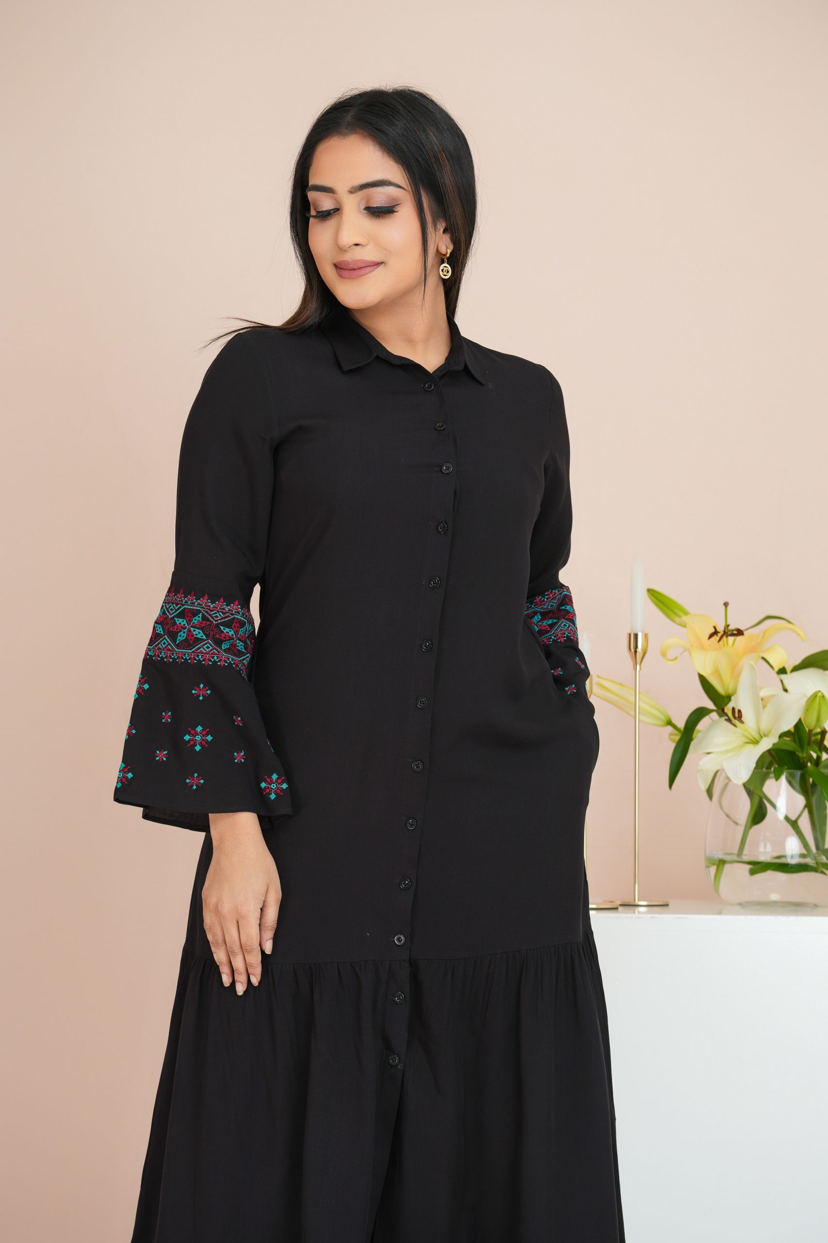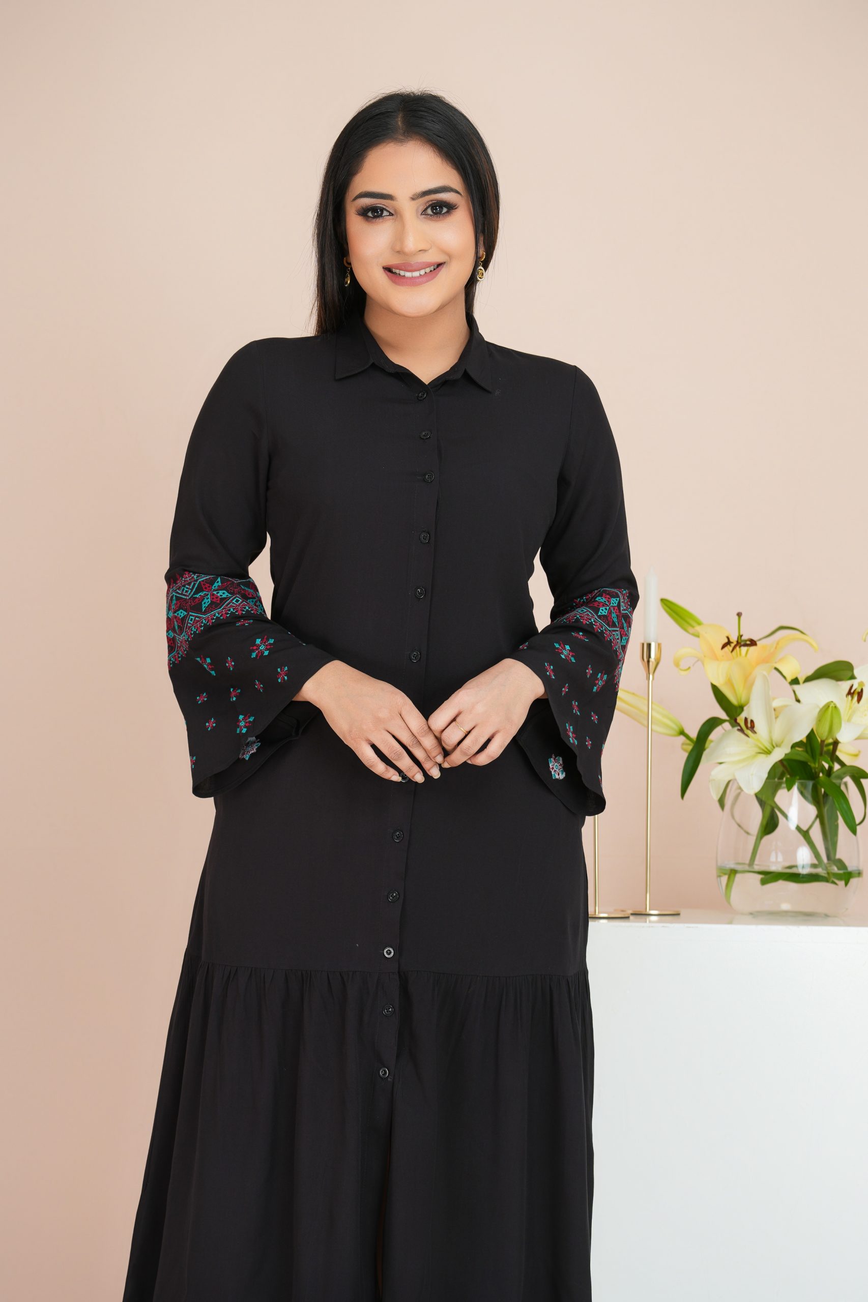 • Soft Feel Embroidered   Dress